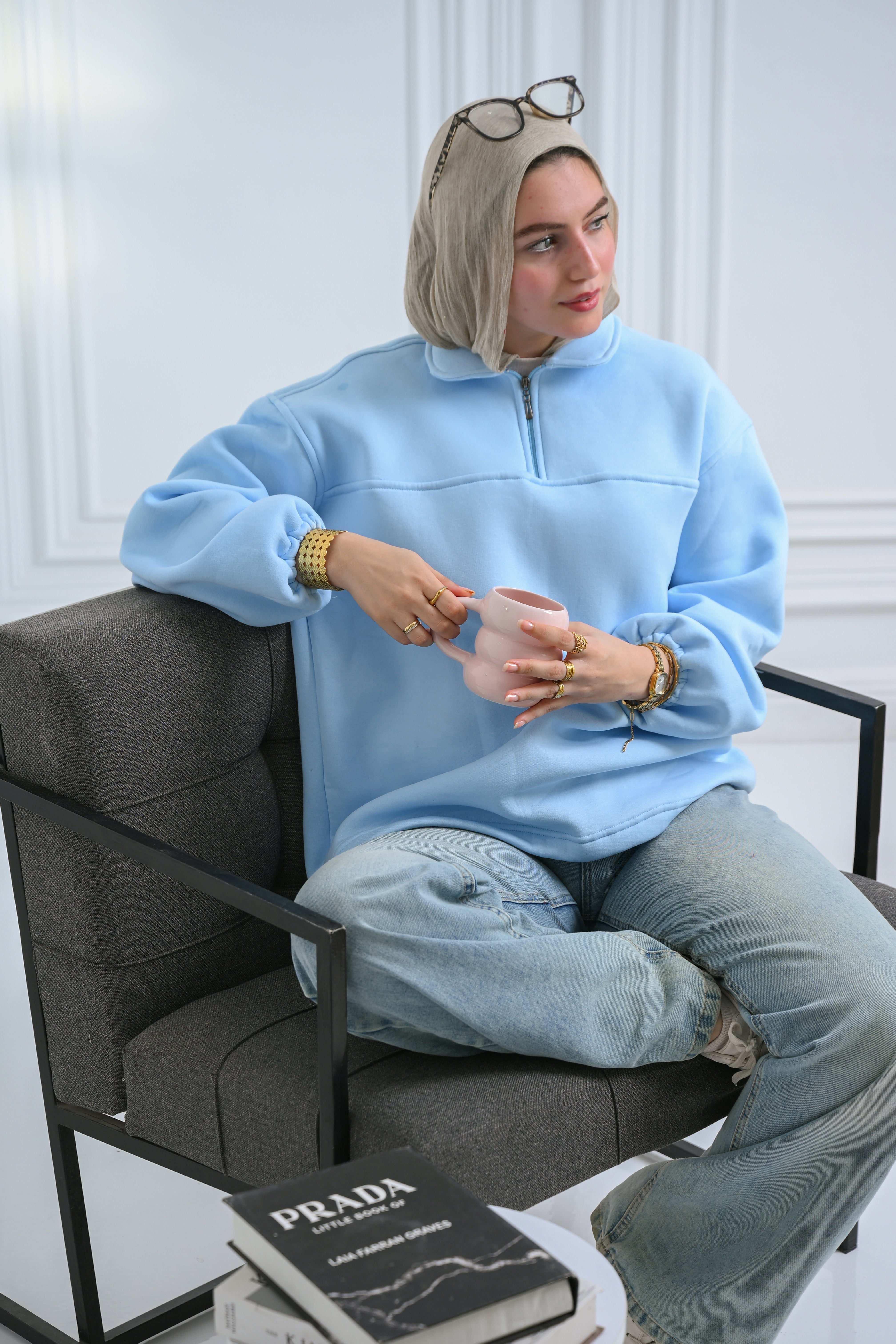 الخامة : ميلتون قطني معالج ضد الوبرة الوزن : متوسط _ ناعم ودافي القصة : واسعة مريحة التصميم : ياقة...