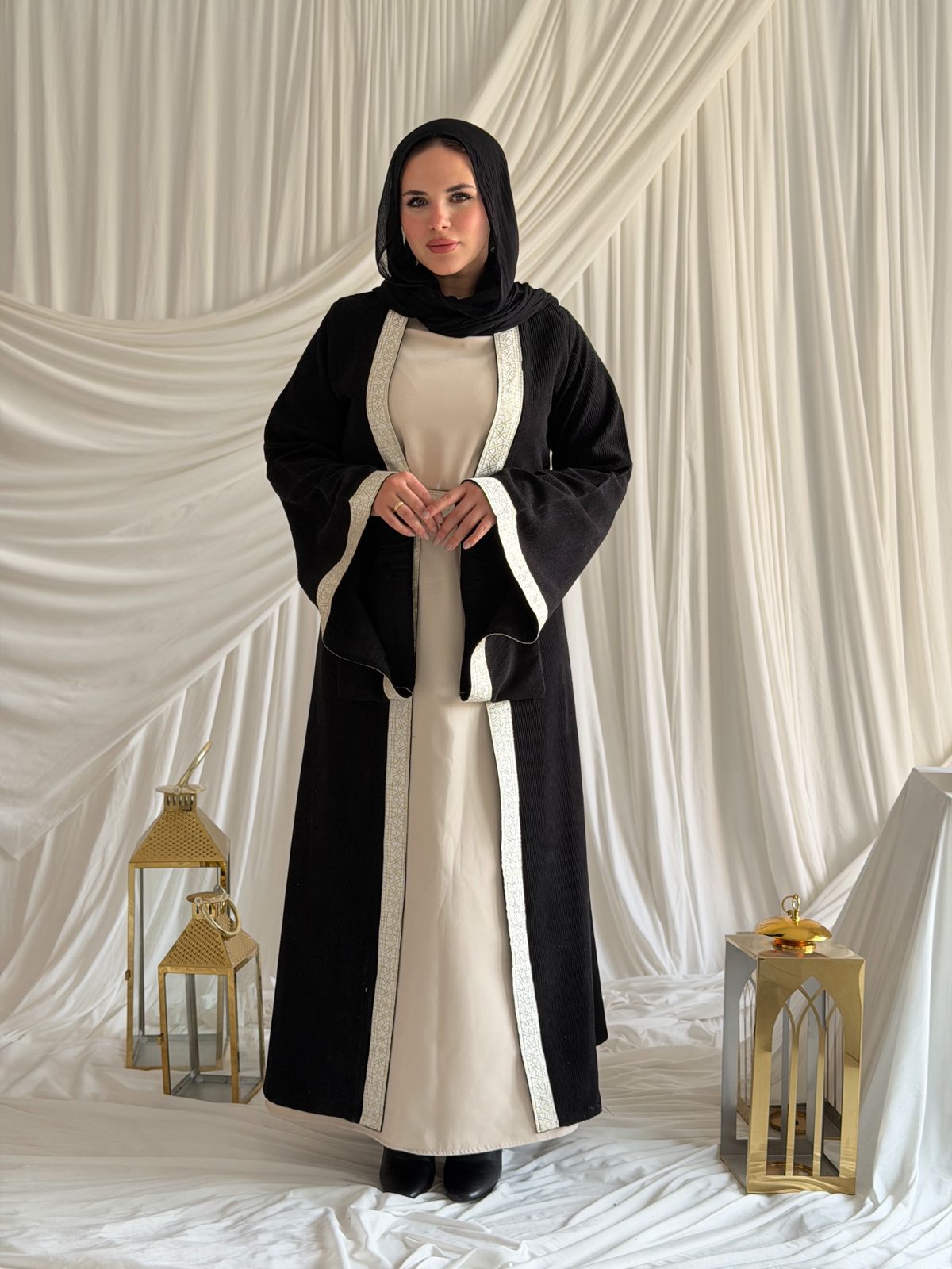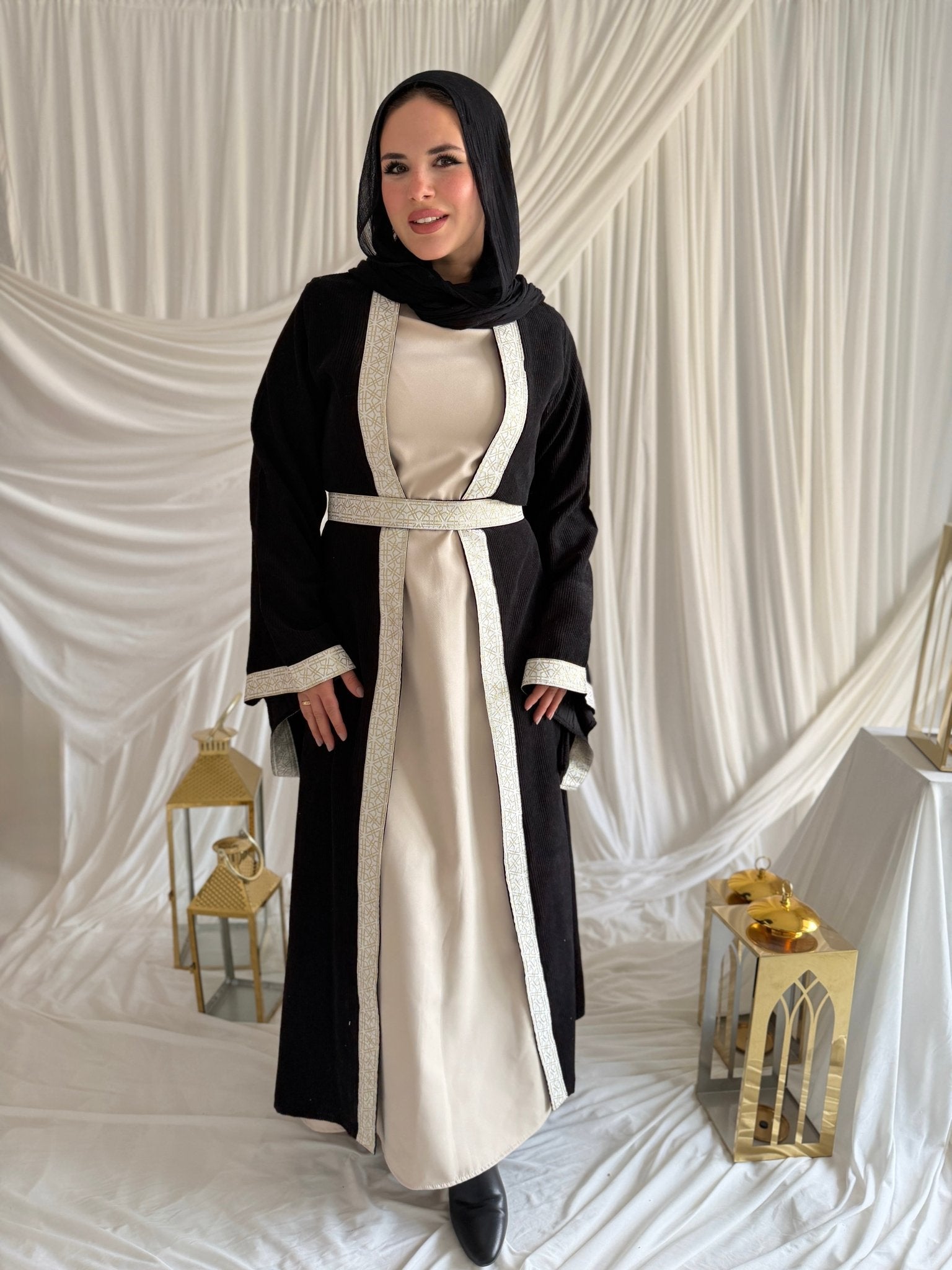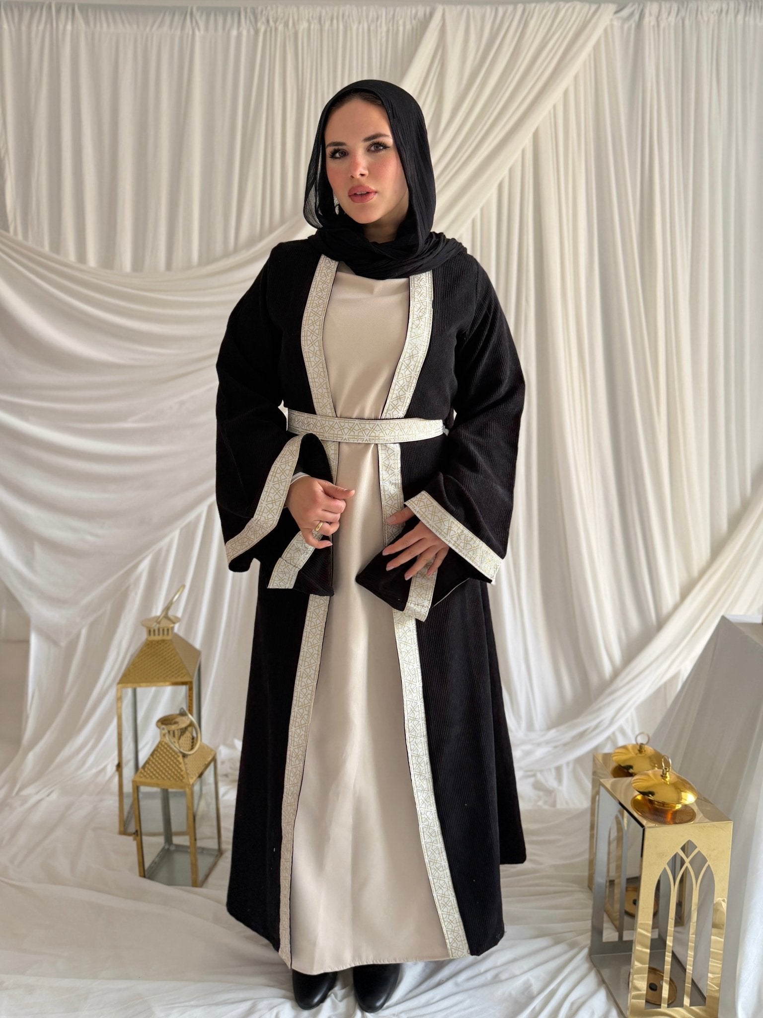 • Ribbed Velvet Kaftan: Crafted from high-quality ribbed velvet for a luxurious texture.