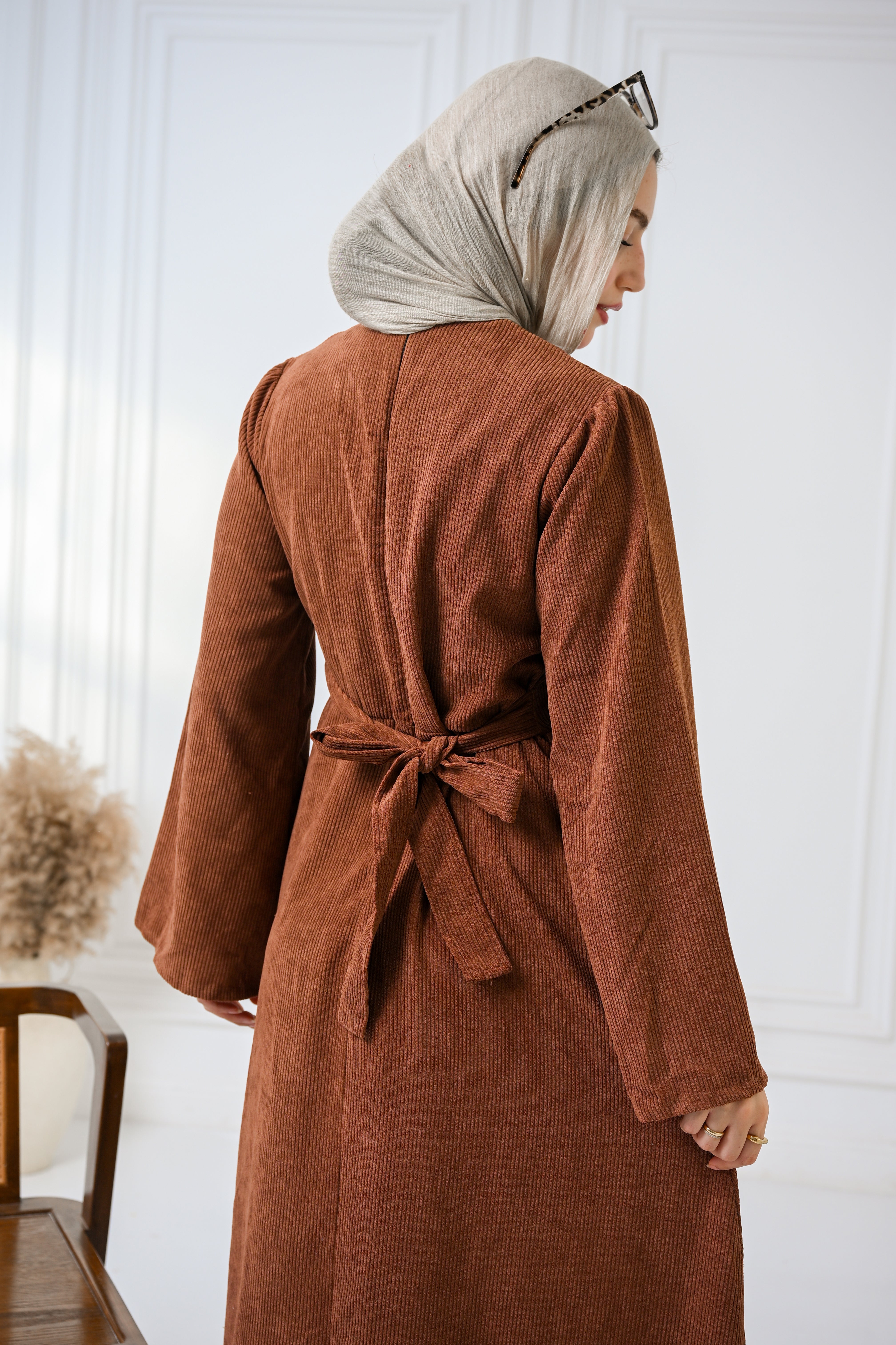 الخامة : قطيفة مضلعة ناعمة الوزن : متوسط _ مريح ودافي القصة : انسيابية بأكمام واسعة الصميم :بسيط وراقي بتفاصيل...
