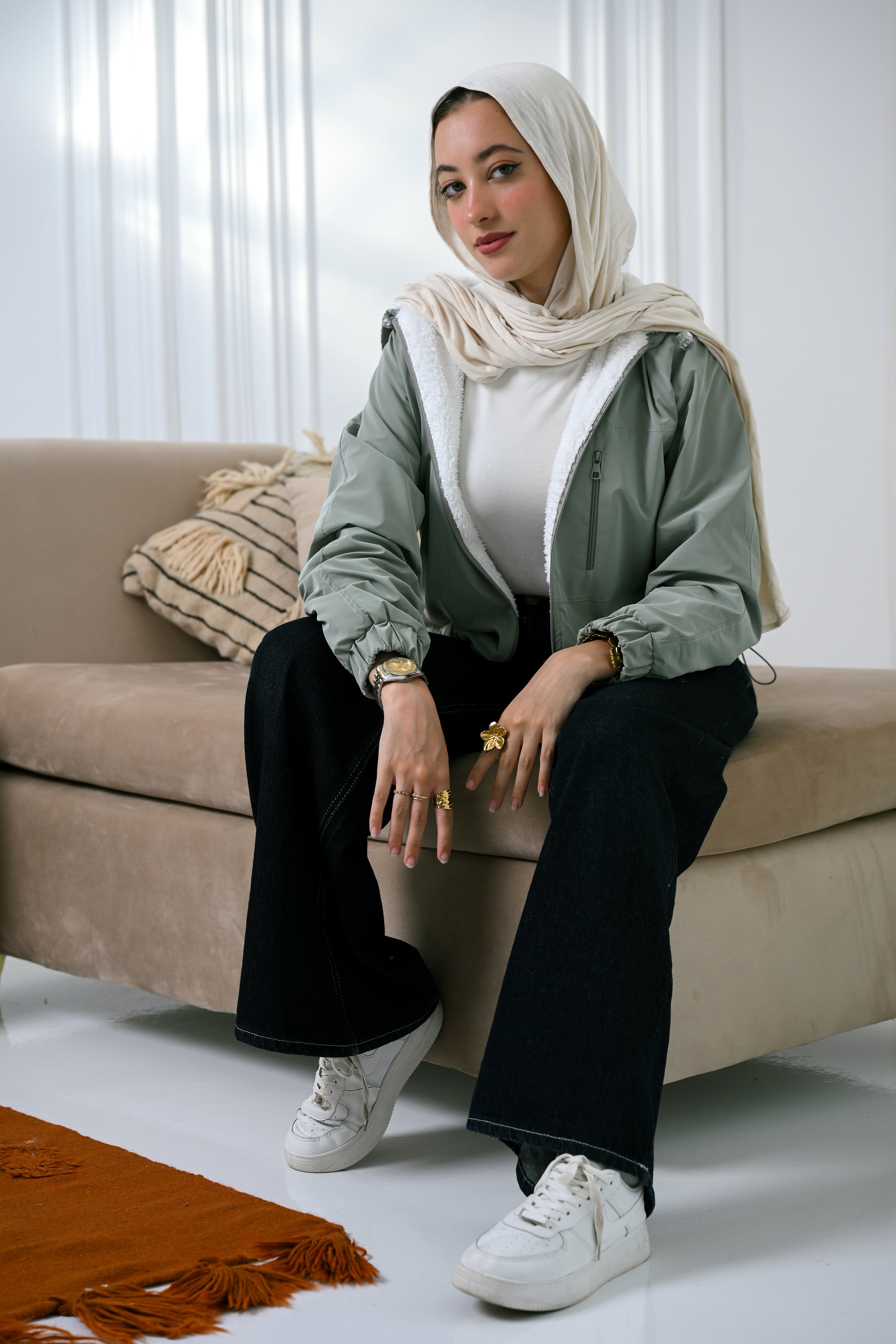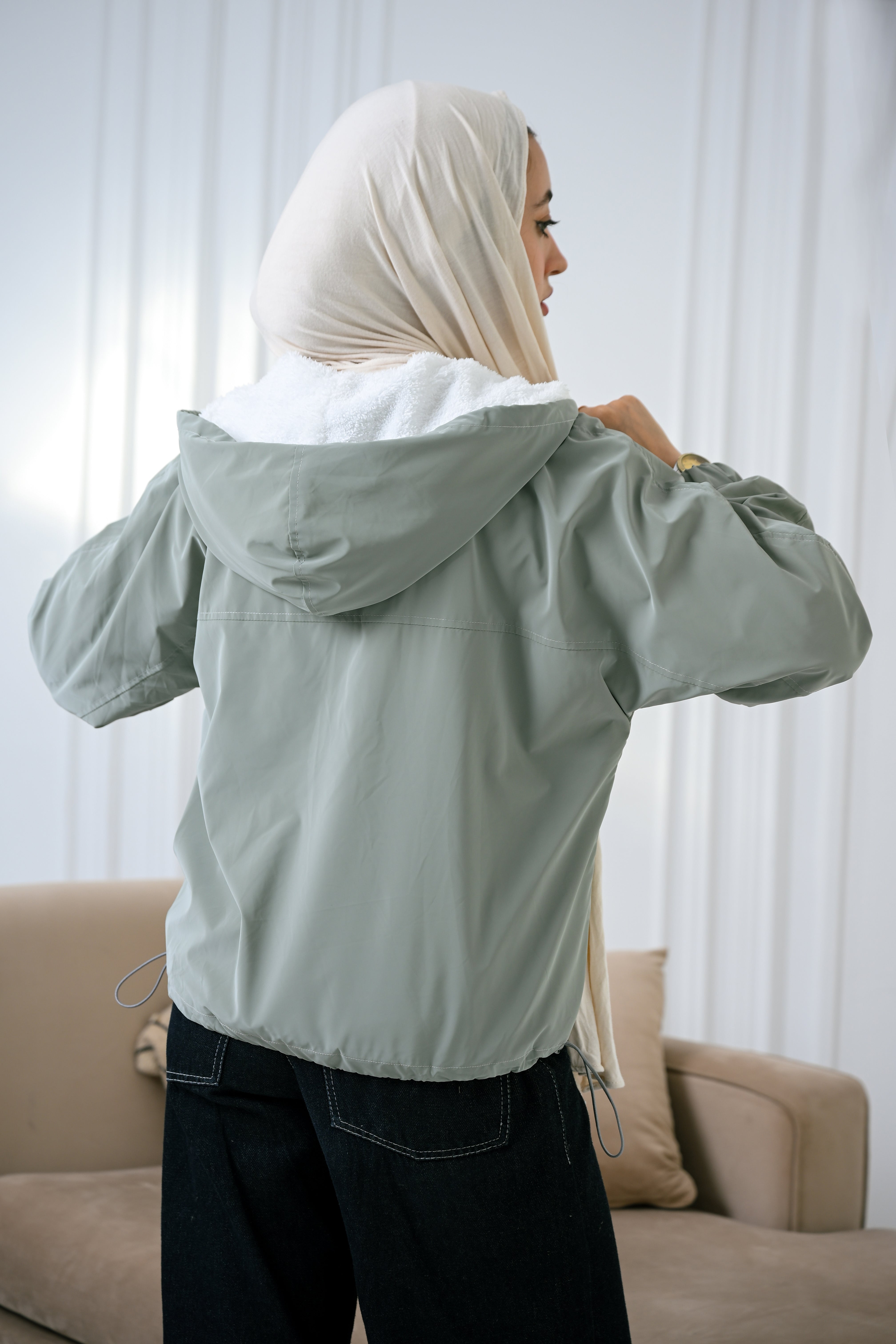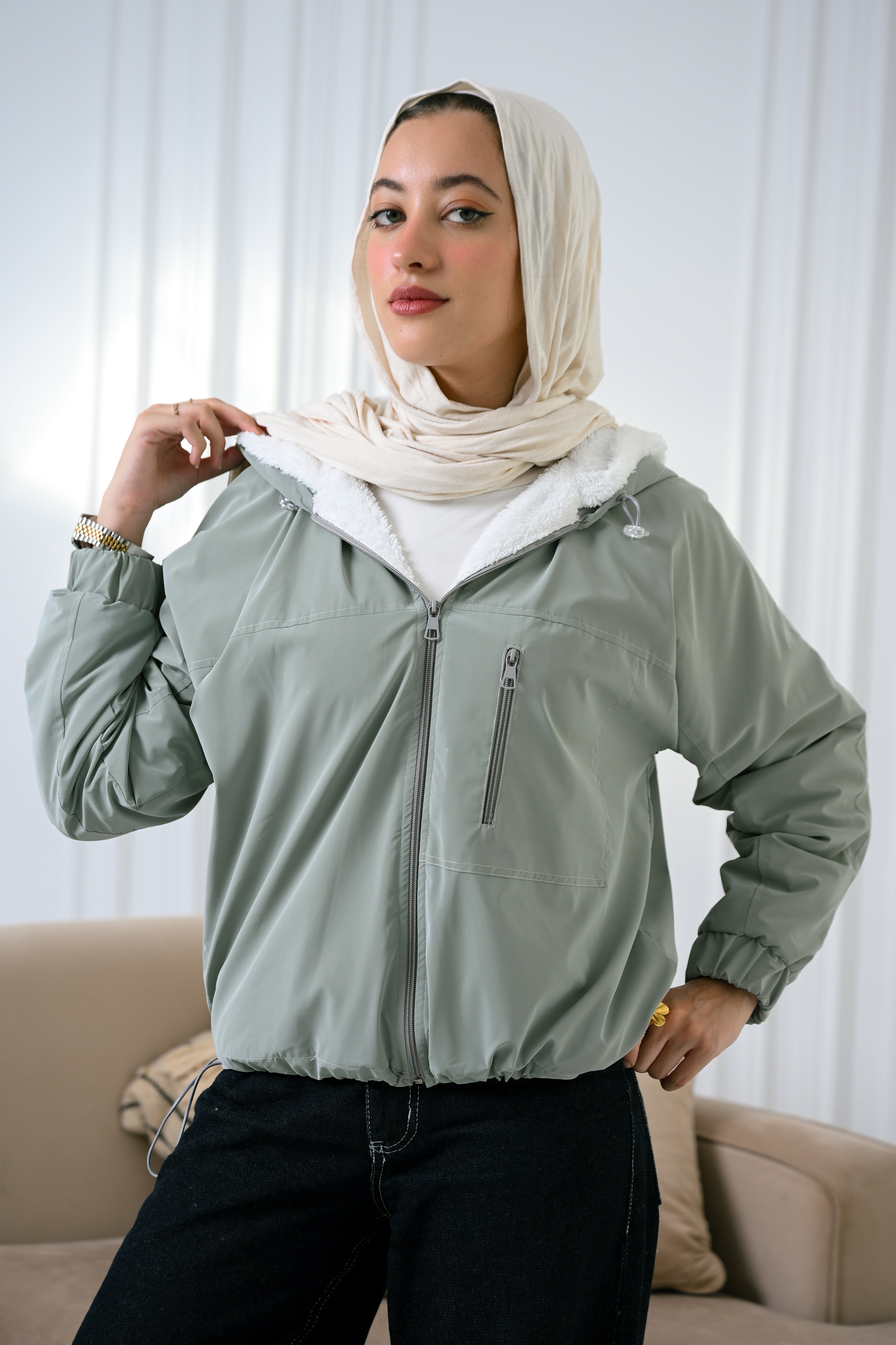 الخامة : وتر بروف مقاوم للمطر مبطن فرو ناعم الوزن : متوسط _ دافي ومريح التصميم : سحاب أمامي +...