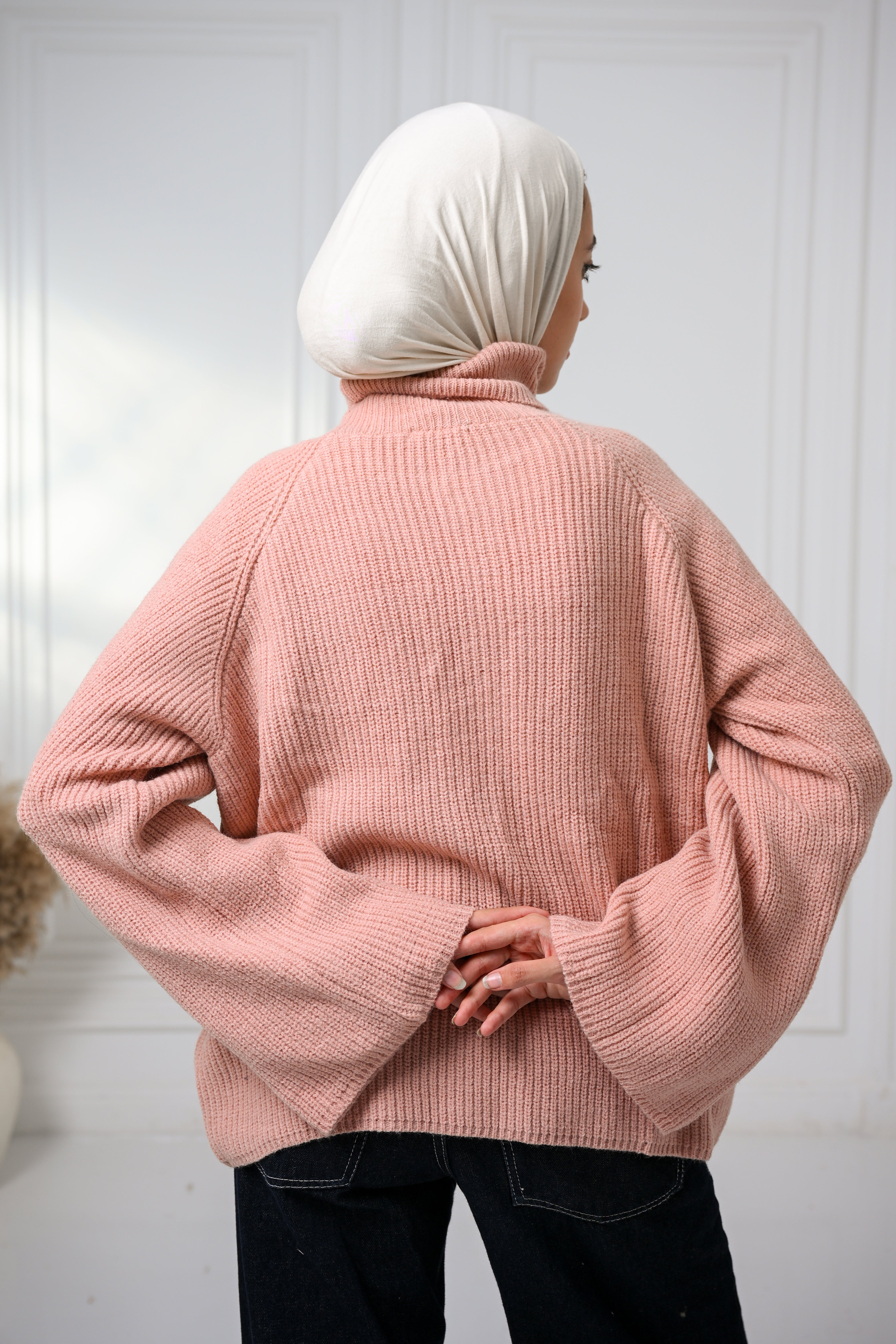 الخامة : صوف موهير ناعم الوزن : متوسط _ دافي ومريح القصة : واسعة بأكمام فضفاضة التصميم : ياقة عالية...